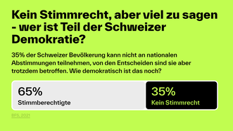 This means that a significant proportion of people living in Switzerland are not allowed to participate in political decisions. This can turn into a problem for a democracy. After all, the raison d'être of a democracy is that political decisions are made by as many people as possible.